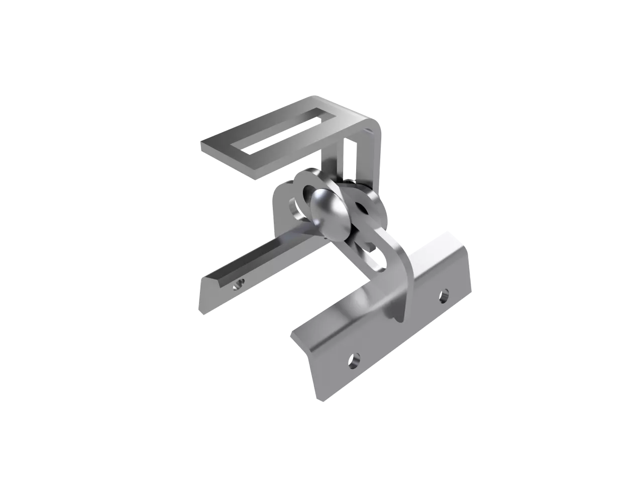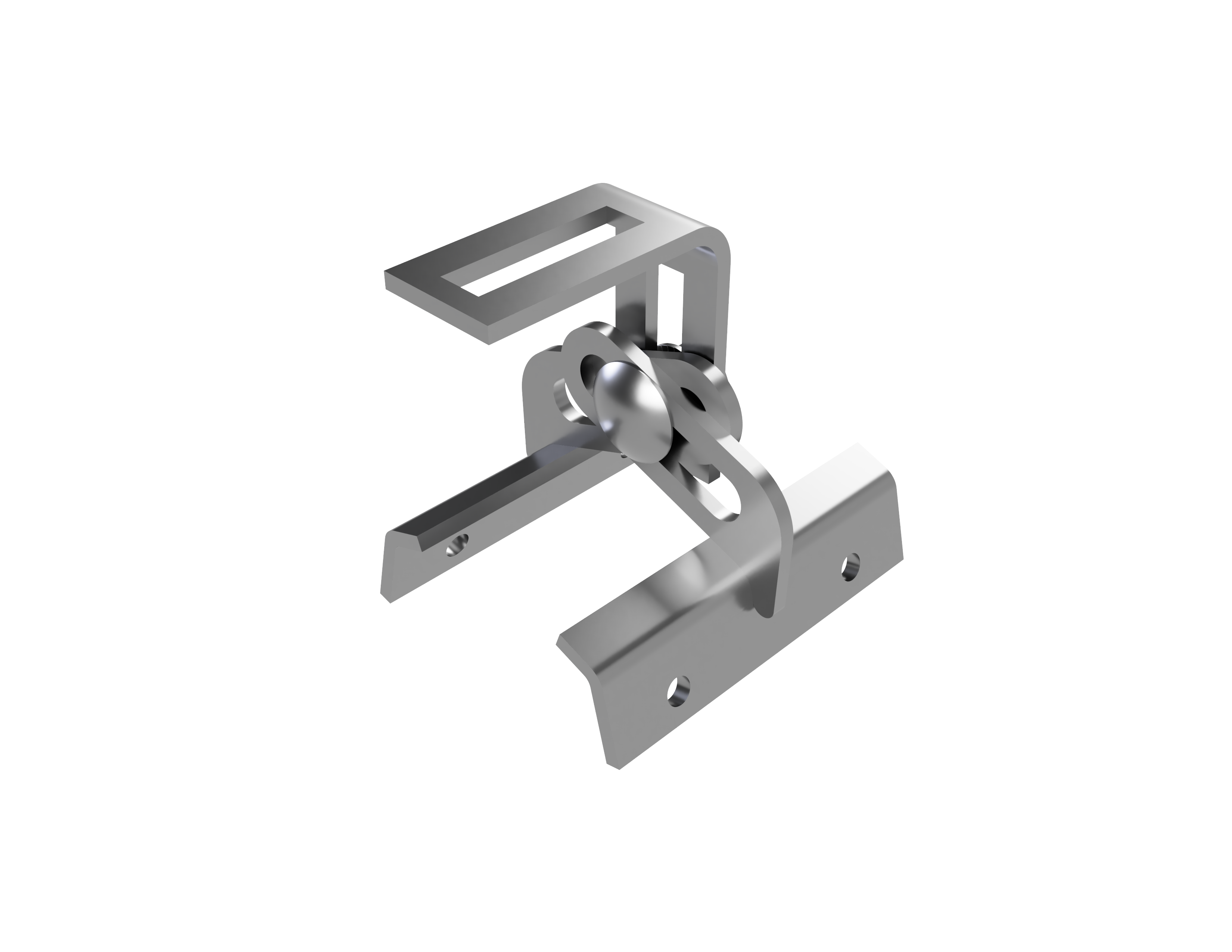 Uchwyt z regulacją do montażu profili aluminiowych na dachu pokrytym blachą trapezową. Wykonane ze stali nierdzewnej S304=A2