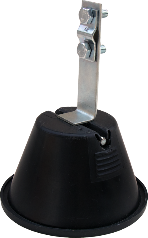 Uchwyt betonowy w tworzywie do prowadzenia zwodów poziomych na dachach płaskich.