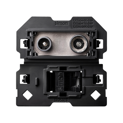 Simon 100 W100-10000470x-039 Gniazdo antenowe R/TV-SAT końcowe + komputerowe RJ45 kat.6 (mechanizm, bez ramki montażowej), zaciski śrubowe