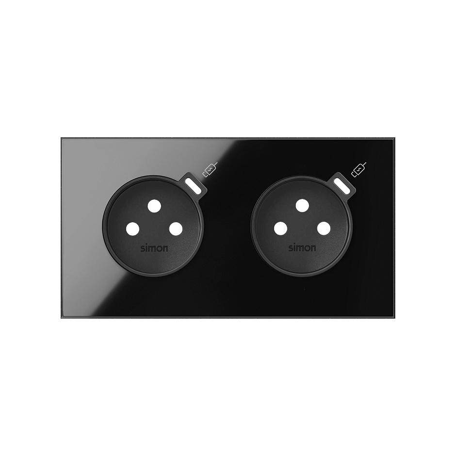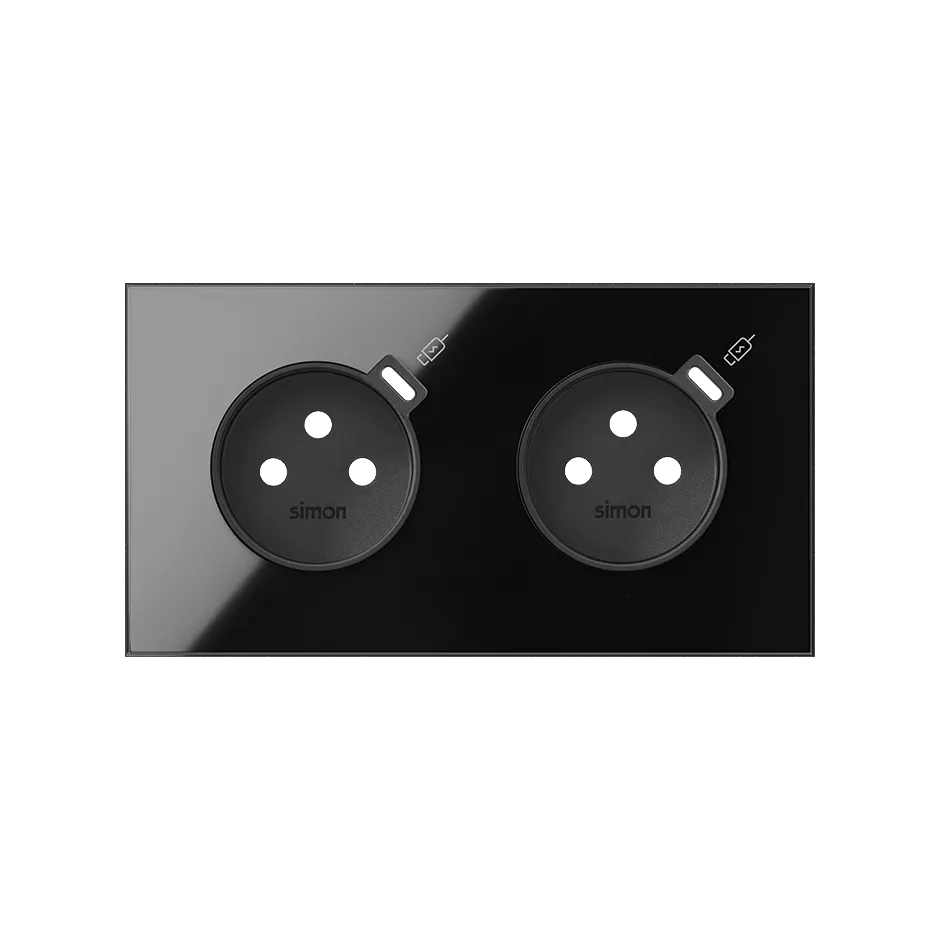 Simon 100 W100-10020251X-138 Panel 2-krotny: 2 gniazda z 2 zintegrowanymi ładowarkami USB C ; czarny