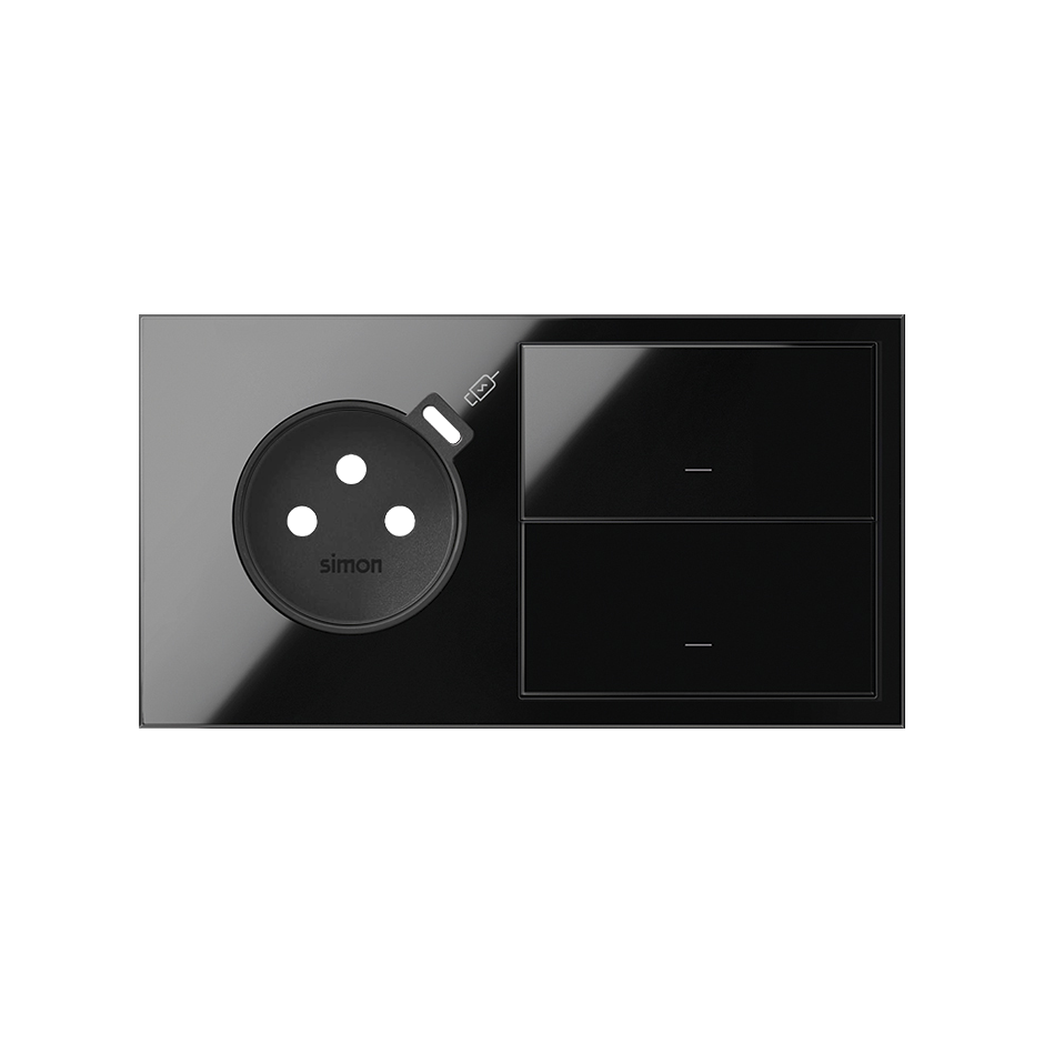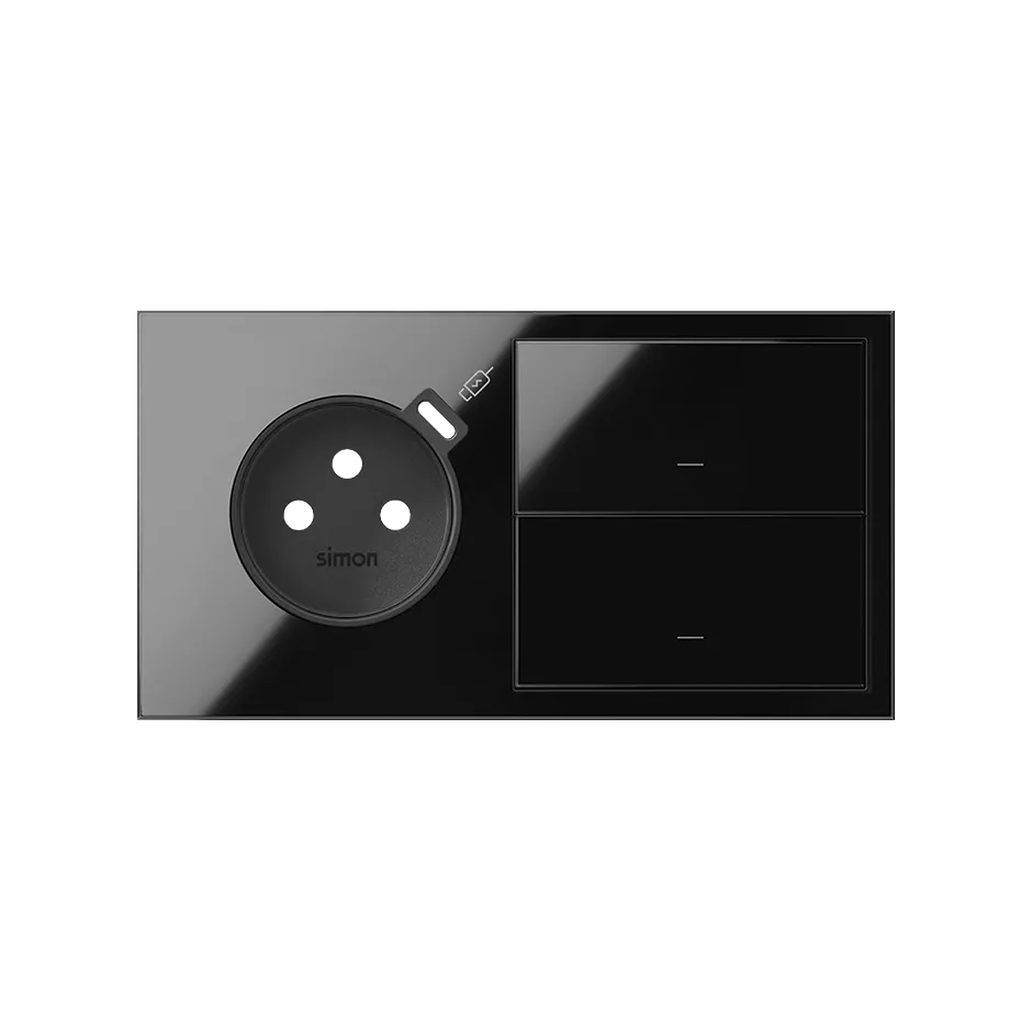 Simon 100 W100-10020252X-138 Panel 2-krotny: 1 gniazdo z 1 zintegrowana ładowarka USB C + 2 klawisze; czarny