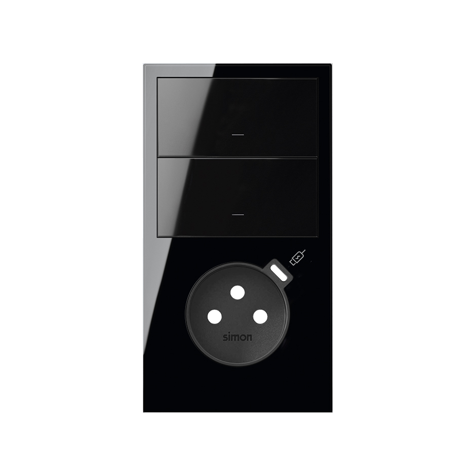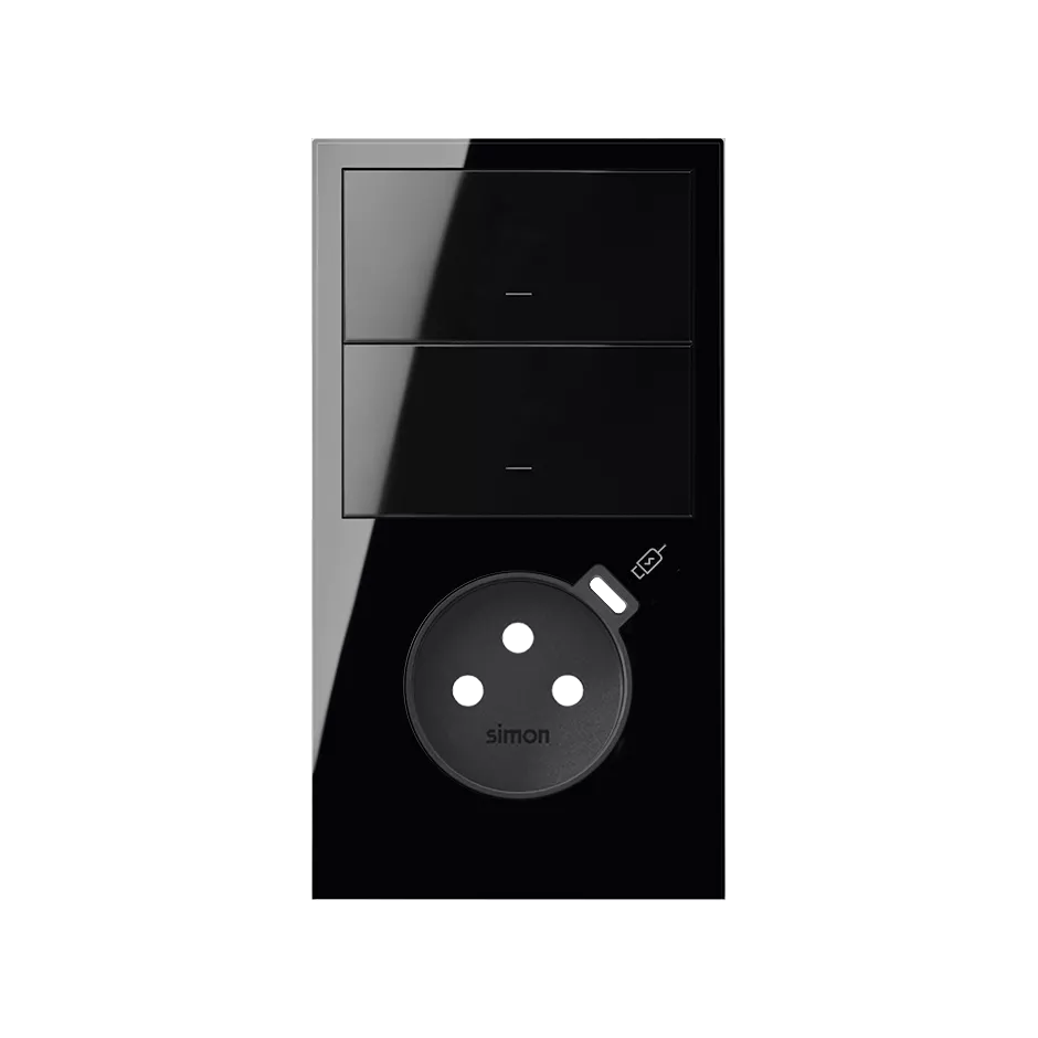 Simon 100 W100-10020253X-138 Panel 2-krotny pion: 2 klawisze + gniazdo z zintegrowaną ładowarką USB C; czarny