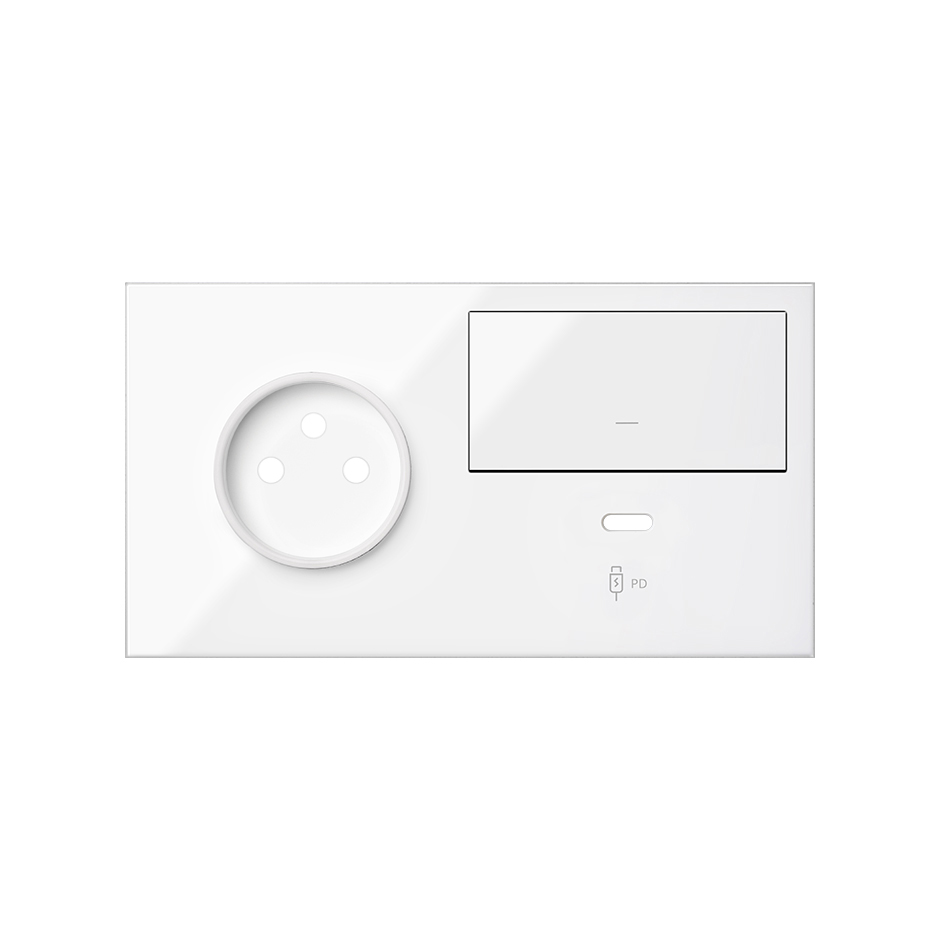 Simon 100 W100-10020259X-130 Panel 2-krotny: 1 gniazdo + 1 klawisz + 1 ładowarka USB C (prawa strona); biały