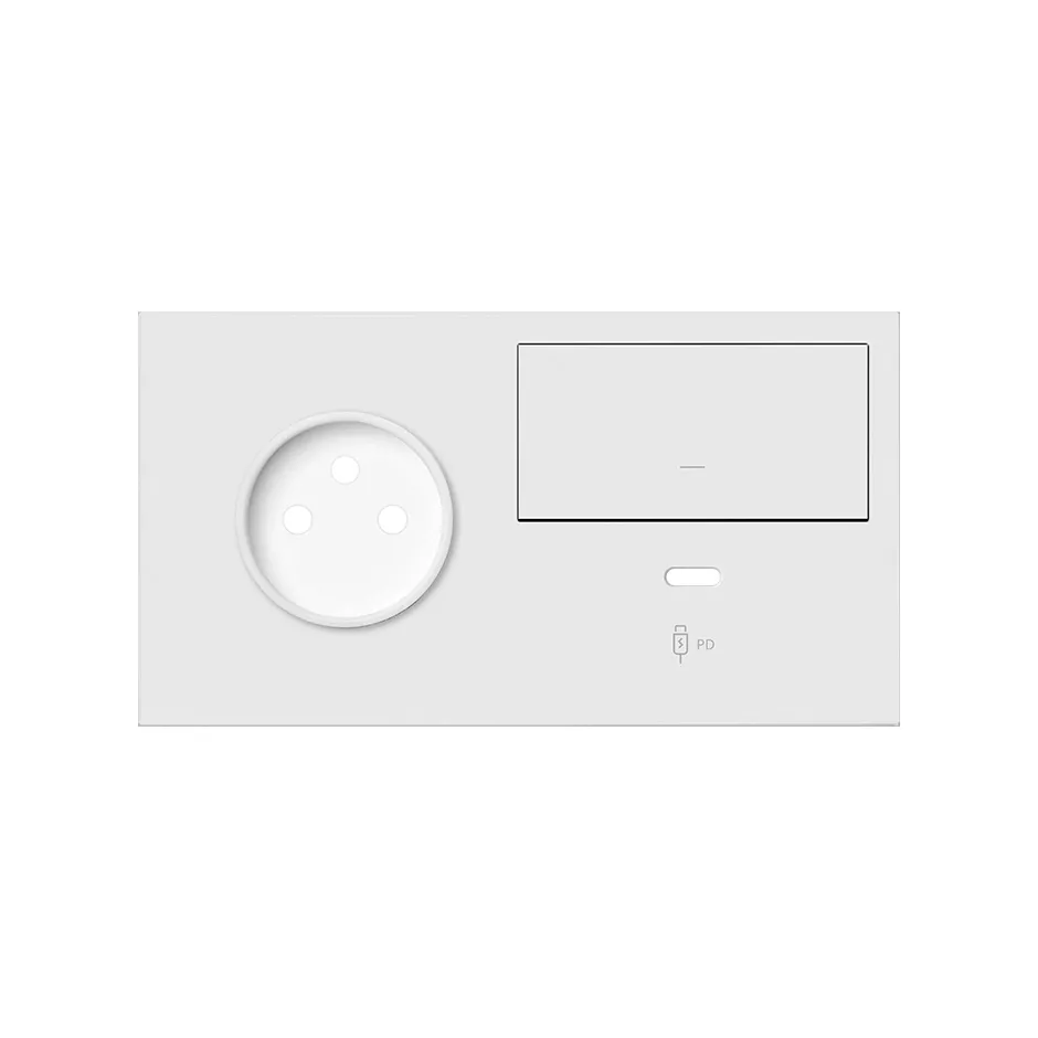 Simon 100 W100-10020259X-230 Panel 2-krotny: 1 gniazdo + 1 klawisz + 1 ładowarka USB C (prawa strona); biały mat