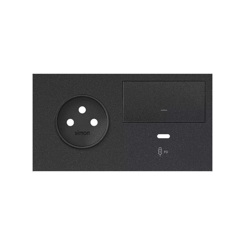 Simon 100 W100-10020259X-238 Panel 2-krotny: 1 gniazdo + 1 klawisz + 1 ładowarka USB C (prawa strona); czarny mat