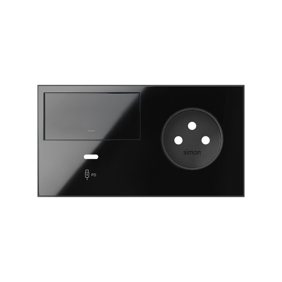 Simon 100 W100-10020260X-138 Panel 2-krotny: 1 gniazdo + 1 klawisz + 1 ładowarka USB C (lewa strona); czarny