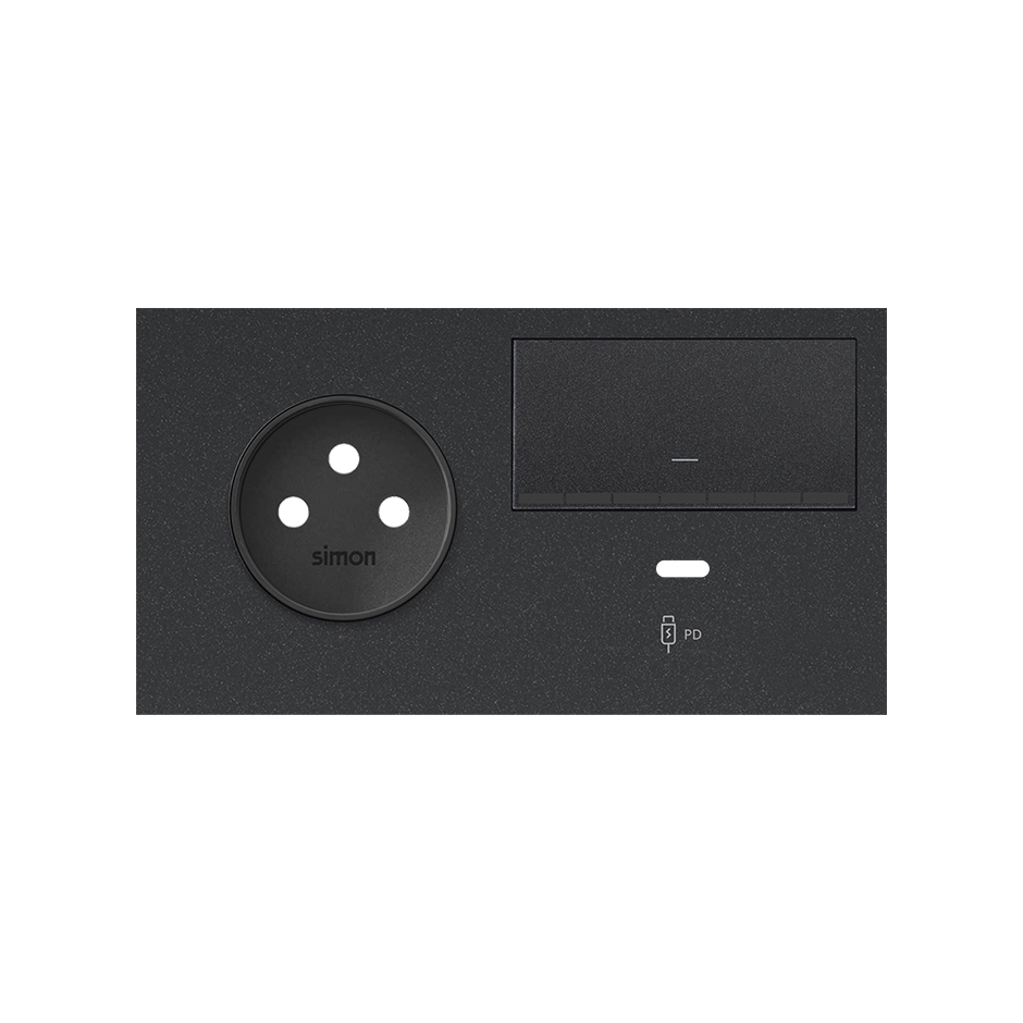 Simon 100 W100-10020261X-238 Panel 2-krotny: 1 gniazdo + 1 ściemniacz + 1 ładowarka USB C (prawa strona); czarny mat