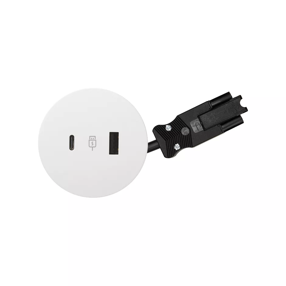 Flash 60 Nazwa produktu/Rodzaj meblowa ładowarka USB A+C 18W Kolor biały Prąd znamionowy 3.1A Napięcie znamionowe 5V Rodzaj podłączenia / Typ zacisku szybkozłącza Stopień ochrony IP IP20 Uwagi konserwacja - użyj miękkiej, suchej szmatki. Nie używaj ściernych szmatek ani środków czyszczących zawierających chlor,