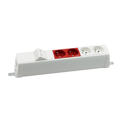 Simon 480 TS48-230E220K0-33 Listwa poszerzona 2 gn. typ E; 2 gn. UPS i płytka 2xRJ45 keystone; złącze śrubowe; biały