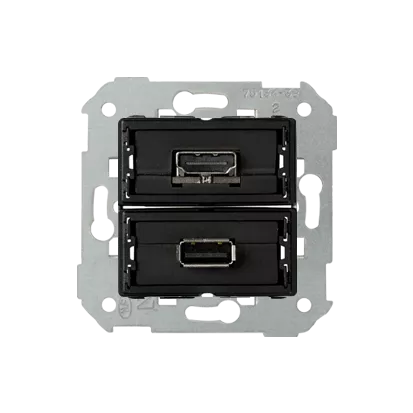Simon 82 W7-501095-03X-XXXX Gniazdo USB + HDMI (V1.4), żeńskie. Podłączenie HDMI kątowe. !Wymagana puszka podtynkowa wielopolowa (nie łączona)