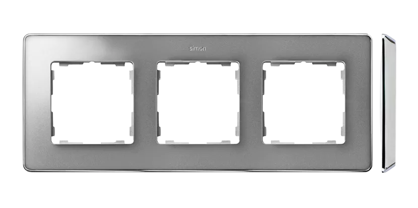 Simon 82 Detail W8-201630-093-xxxx Ramka 3-krotna, Detail SELECT-metal, ALUMINIUM / podstawa Chrom