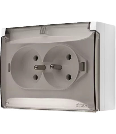 | Nazwa produktu/Rodzaj | gniazdo wtyczkowe podwójne z uziemieniem typu Schuko - przesłony torów prądowych - w wersji IP44 - klapka w kolorze pokrywy |