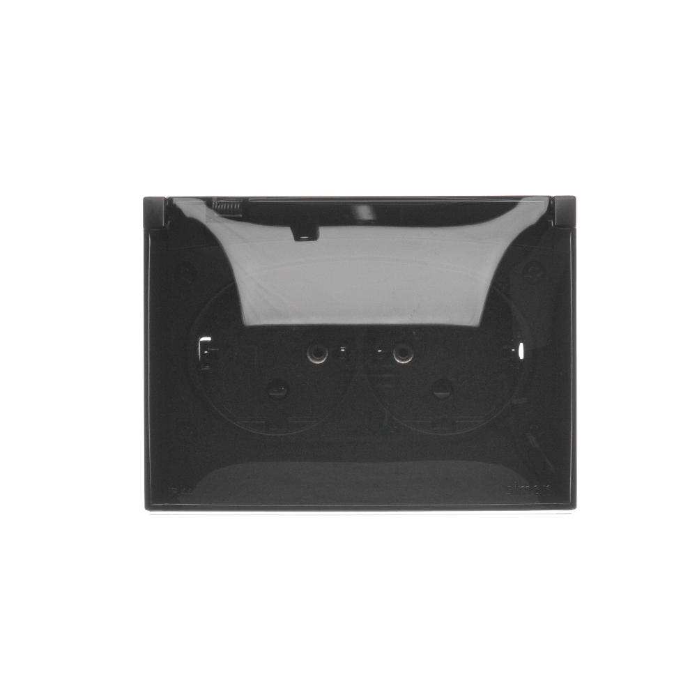 | Nazwa produktu/Rodzaj | gniazdo wtyczkowe podwójne kompaktowe z uziemieniem typu Schuko z przesłonami torów prądowych - w wersji IP44 - klapka w kolorze transparentnym |