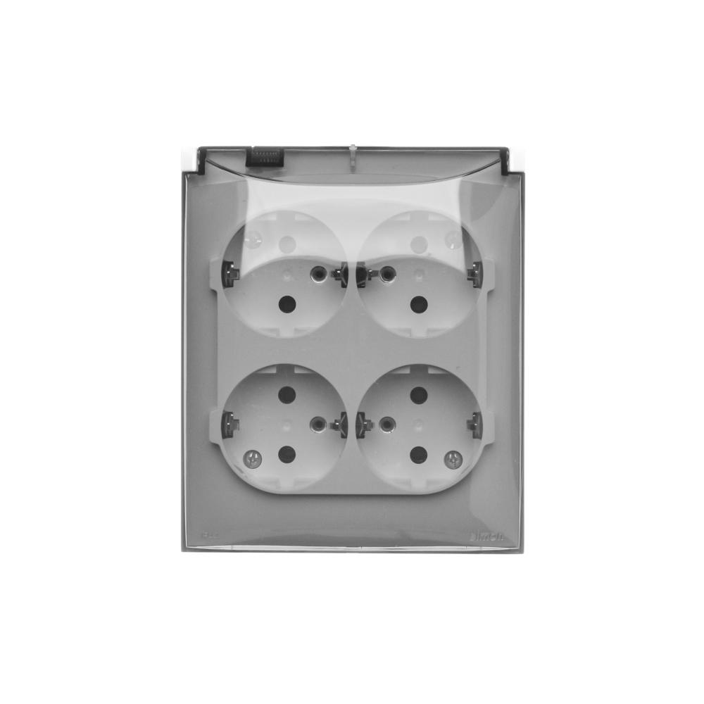 | Nazwa produktu/Rodzaj | gniazdo wtyczkowe poczwórne z uziemieniem typu Schuko - w wersji IP44 - klapka w kolorze transparentnym |