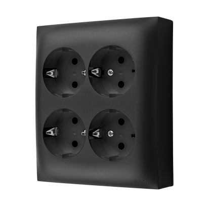 Simon Aquaclick WA-CGSZN4C-xx-49xx Gniazdo wtyczkowe natynkowe, Schuko, 4-krotne, IP20, 16A, 250V~, szybkozłącza; czarny