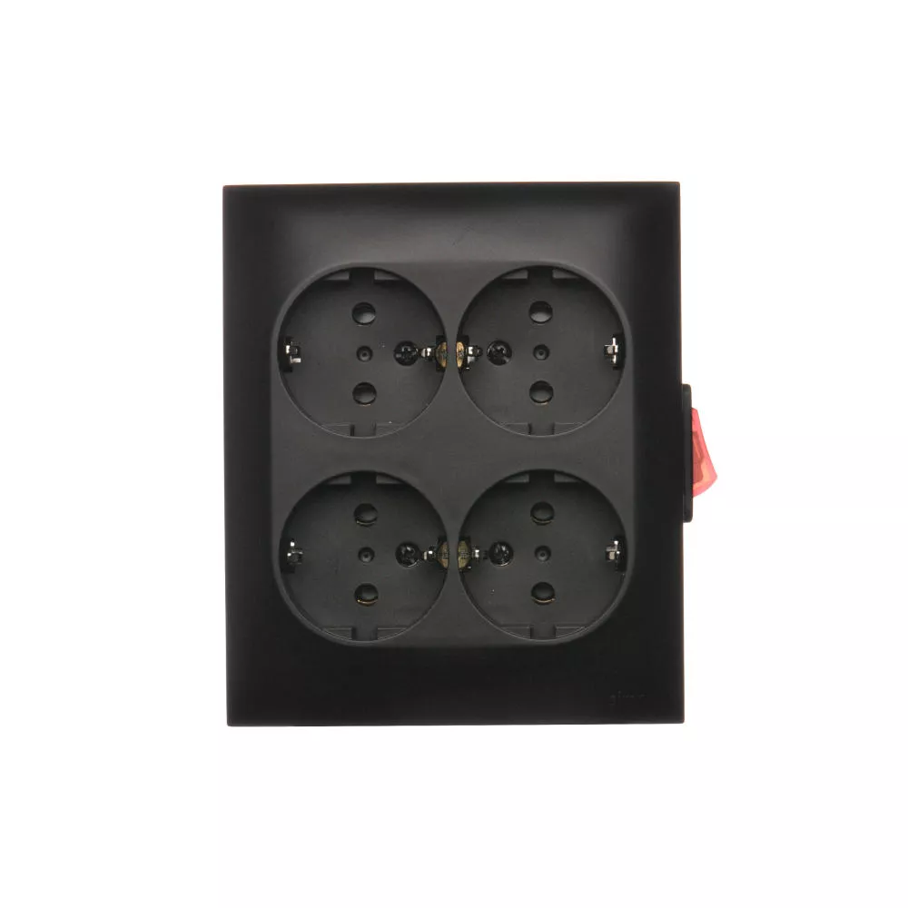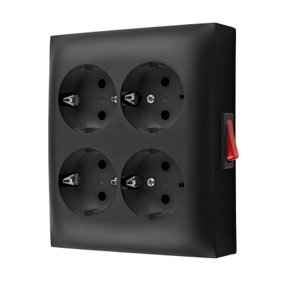 Simon Aquaclick WA-GSZN4W1-xx-49xx Gniazdo wtyczkowe natynkowe, Schuko, 4-krotne, z wbudowanym wyłącznikiem, IP20, 16A, 250V~, zaciski śrubowe; czarny