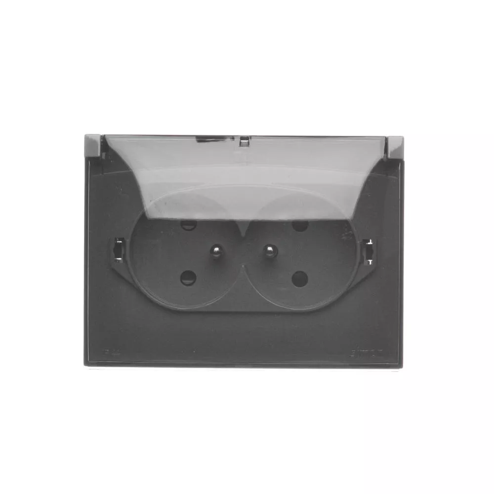 Simon Aquaclick WA-CGZ21CS-XX-18AX Gniazdo wtyczkowe natynkowe, 2x 1-krotne z uziemieniem, klapka transparentna, IP44, Σ16A, 250V~, szybkozłącza; ciemnoszary