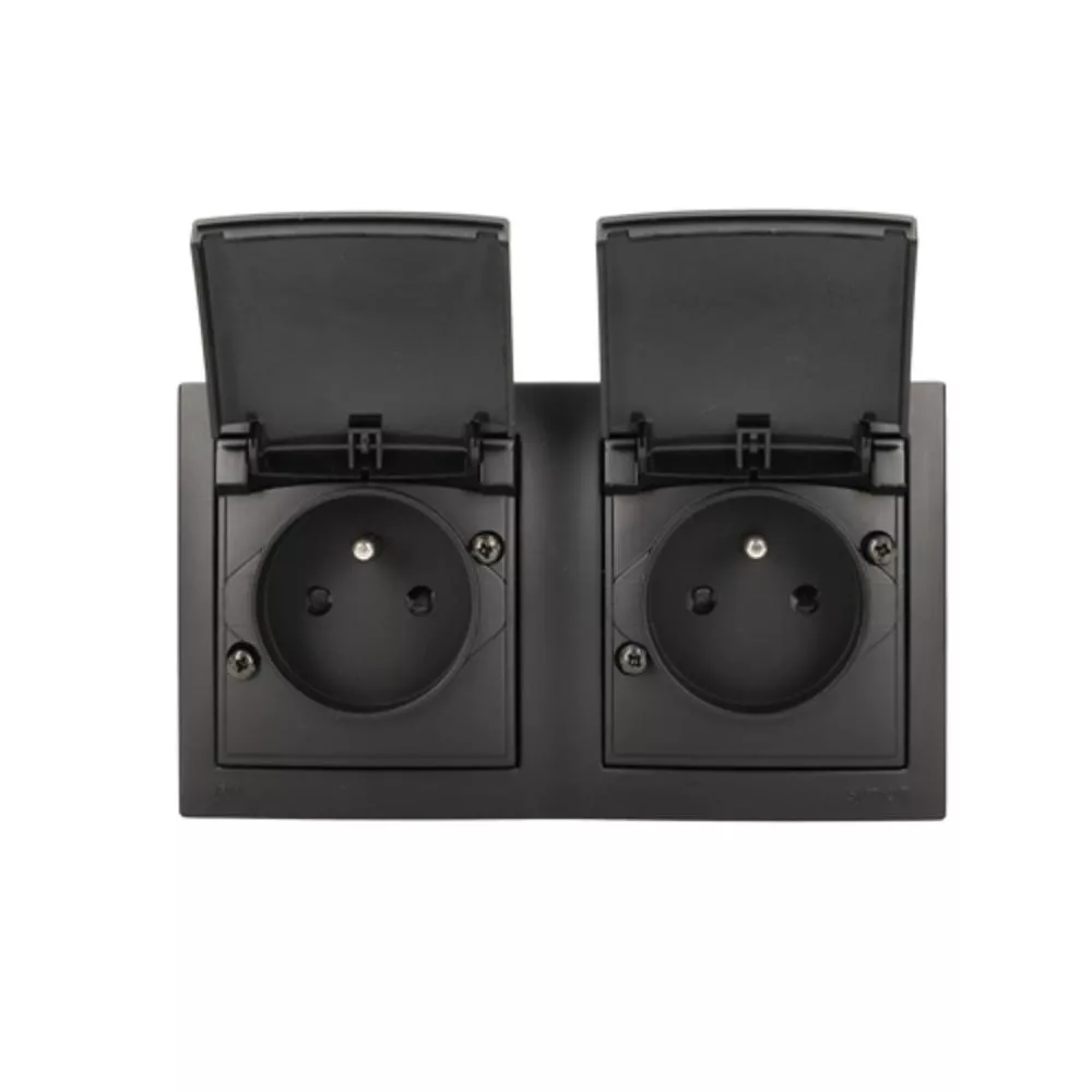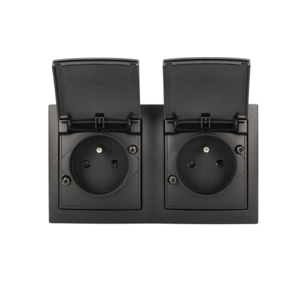 SIMON AQUACLICK WA-CGZ21CZS-XX-49X Gniazdo wtyczkowe natynkowe, 2x 1-krotne z uziem., klapka w kolorze pokrywy, z przesł. torów prąd., IP44, Σ16A, 250V~, szybkozłącza; czarny