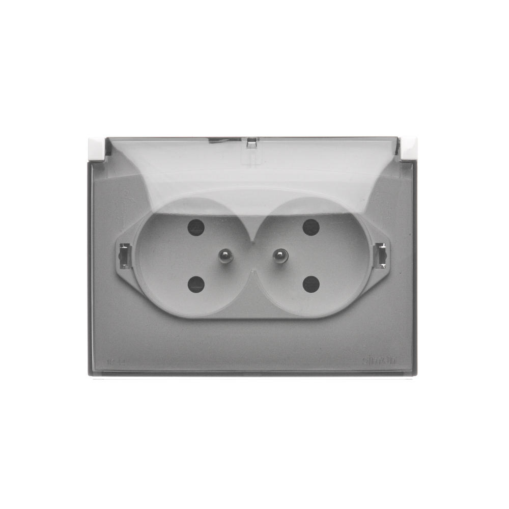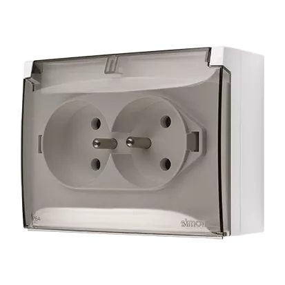 | Nazwa produktu/Rodzaj | gniazdo wtyczkowe podwójne kompaktowe z uziemieniem w wersji IP44 z przesłonami torów prądowych - klapka w kolorze transparentnym |