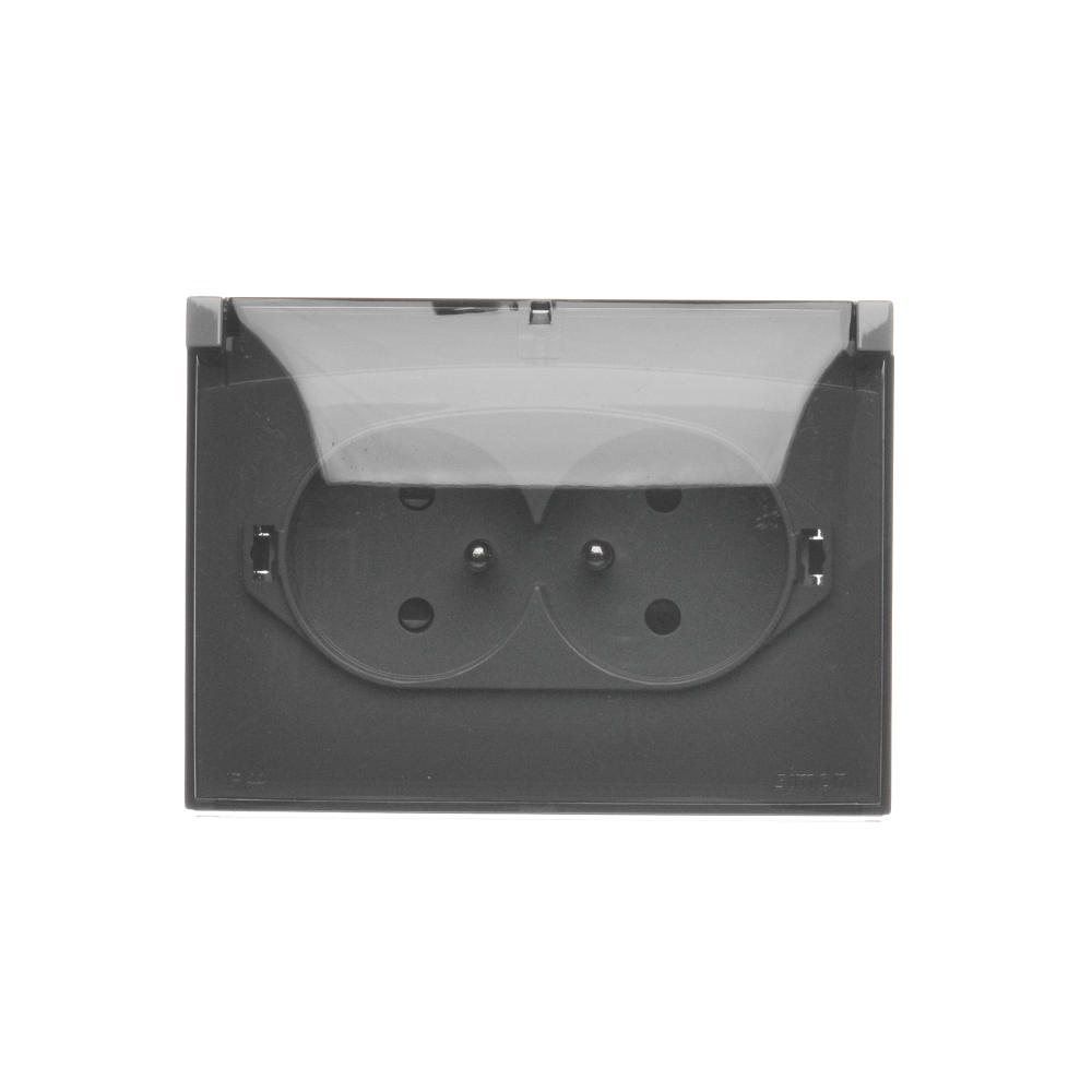 | Nazwa produktu/Rodzaj | gniazdo wtyczkowe podwójne kompaktowe z uziemieniem w wersji IP44 z przesłonami torów prądowych - klapka w kolorze transparentnym |