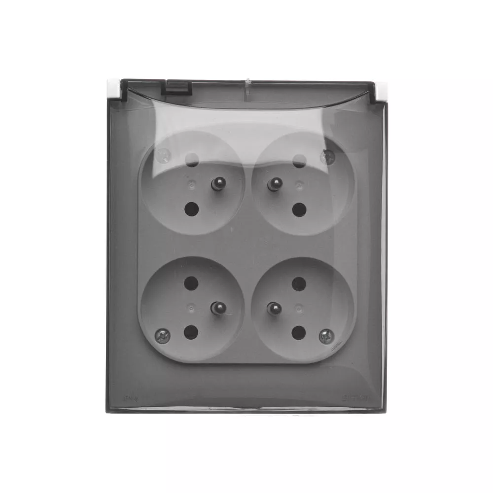 | Nazwa produktu/Rodzaj | gniazdo wtyczkowe poczwórne z uziemieniem - w wersji IP44 - klapka w kolorze transparentnym |