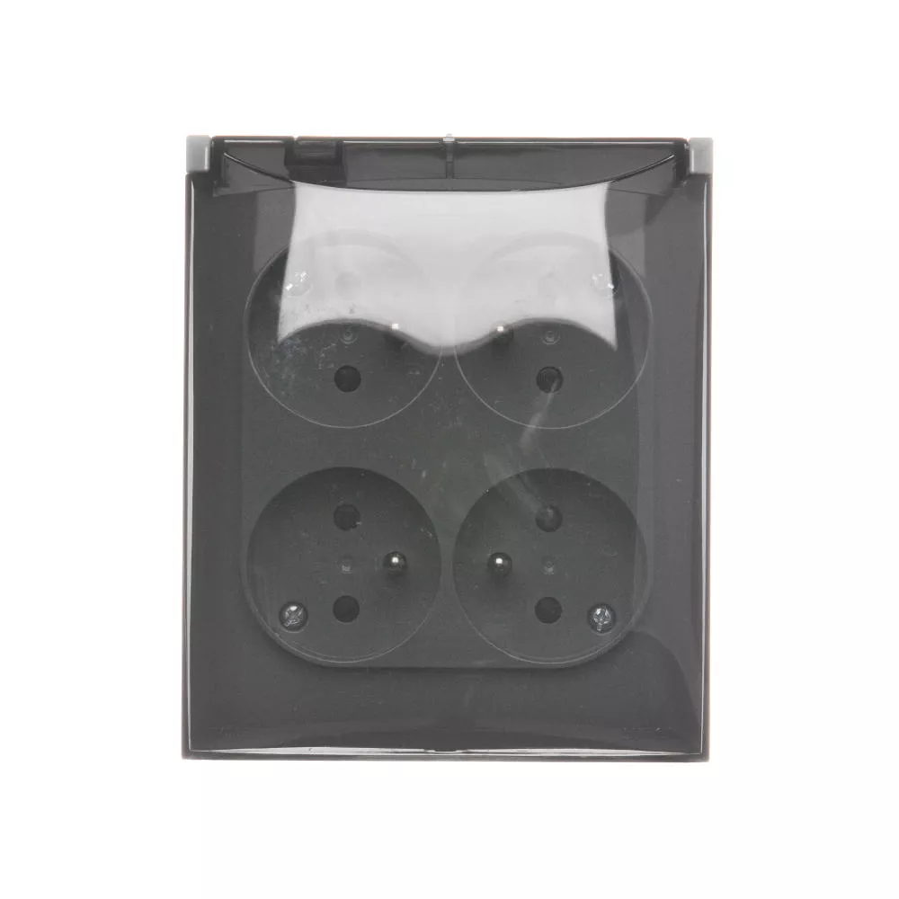 | Nazwa produktu/Rodzaj | gniazdo wtyczkowe poczwórne z uziemieniem - z przesłonami torów prądowych - w wersji IP44 - klapka w kolorze transparentnym |