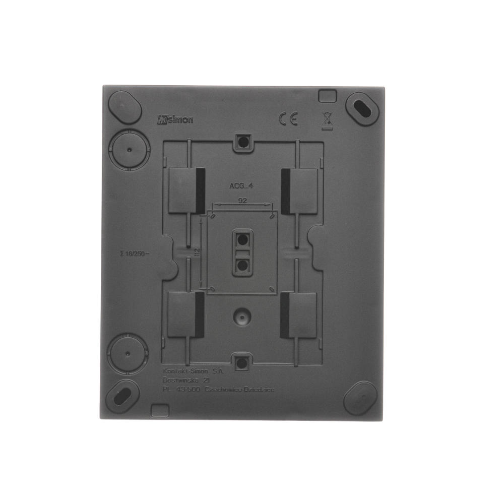 Simon Aquaclick WA-CGZN4xx-xx-49xx Gniazdo wtyczkowe natynkowe, 4-krotne z uziemieniem, IP20, 16A, 250V~, zaciski śrubowe; czarny