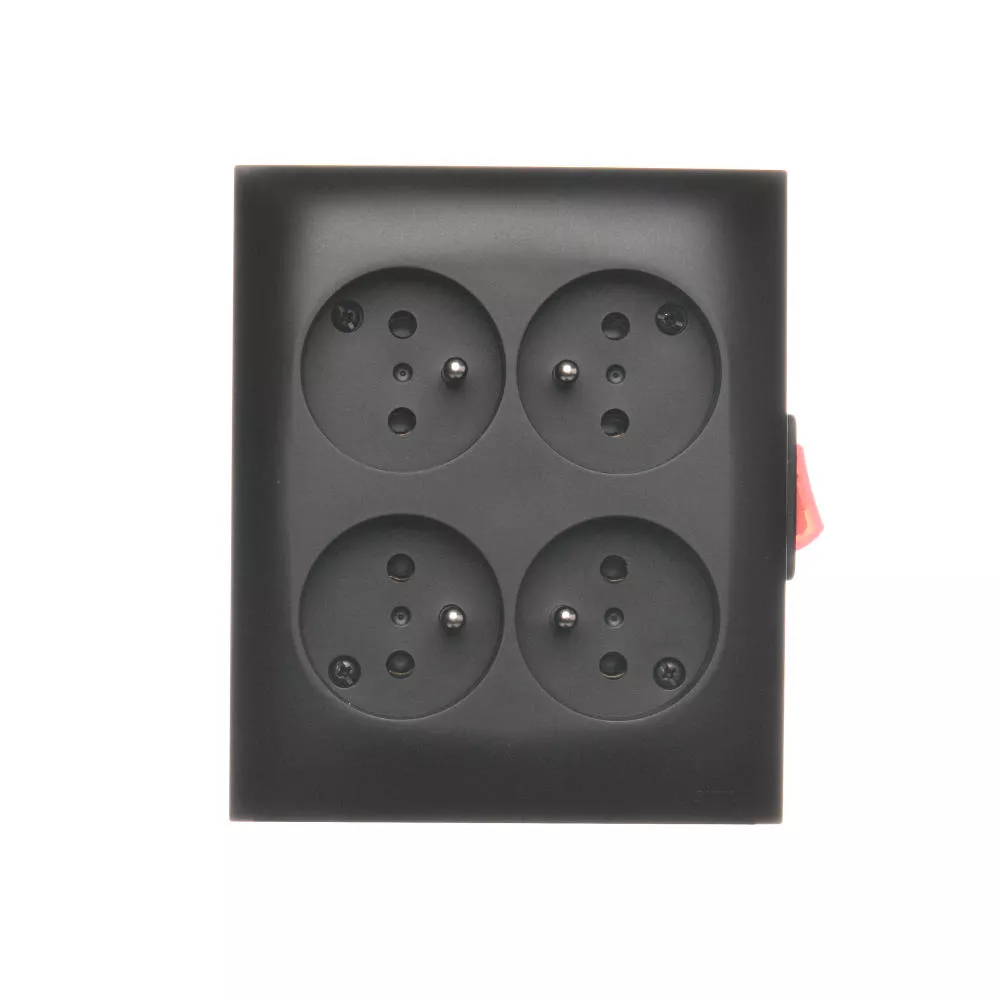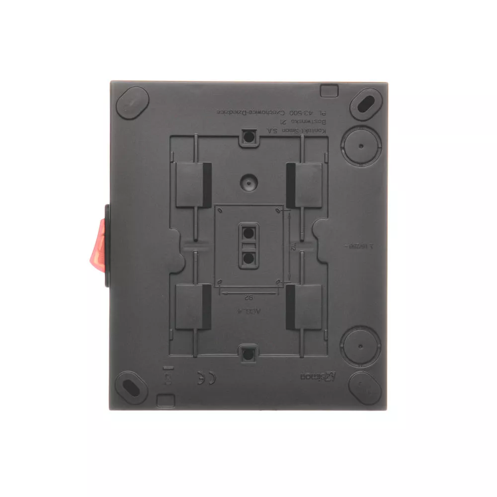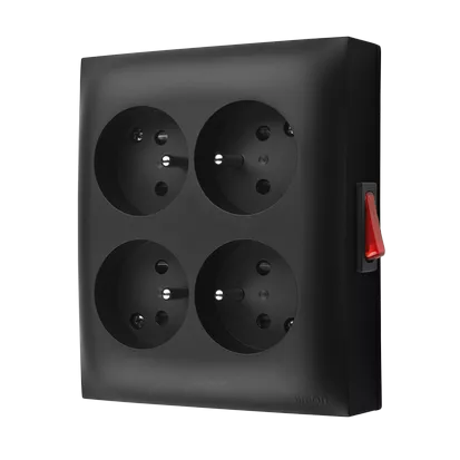 Simon Aquaclick WA-GZN4W1x-xx-49xx Gniazdo wtyczkowe natynkowe, 4-krotne z uziemieniem, z wbudowanym wyłącznikiem, IP20, 16A, 250V~, zaciski śrubowe; czarny