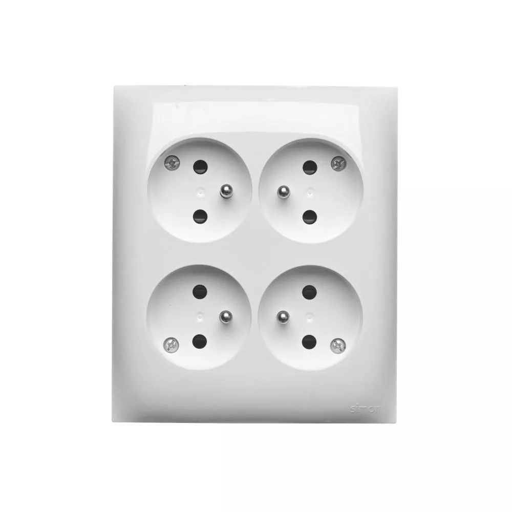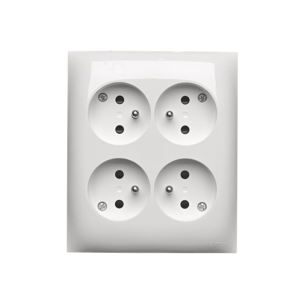 Simon Aquaclick WA-CGZN4Zx-xx-11xx Gniazdo wtyczkowe natynkowe, 4-krotne z uziemieniem, z przesłonami torów prądowych, IP20, 16A, 250V~, zaciski śrubowe; biały