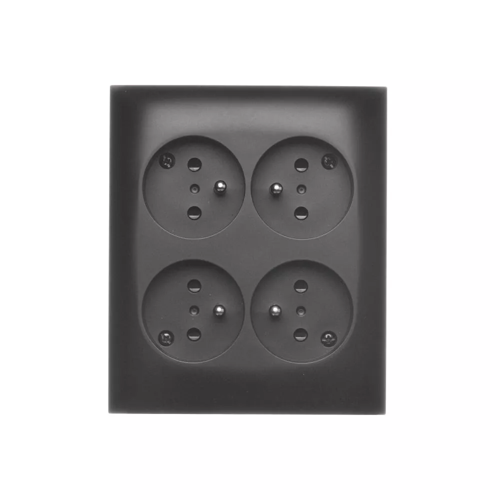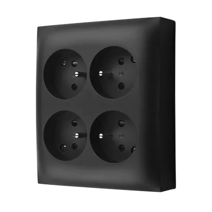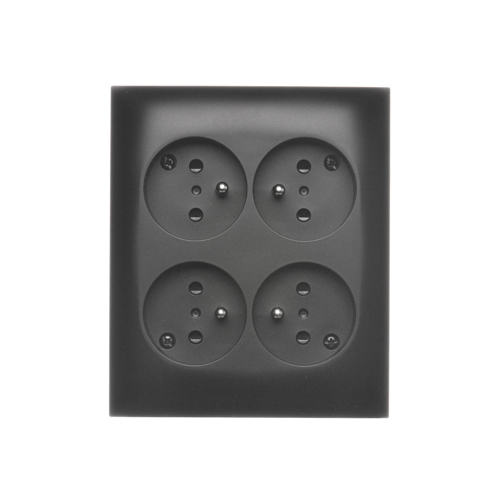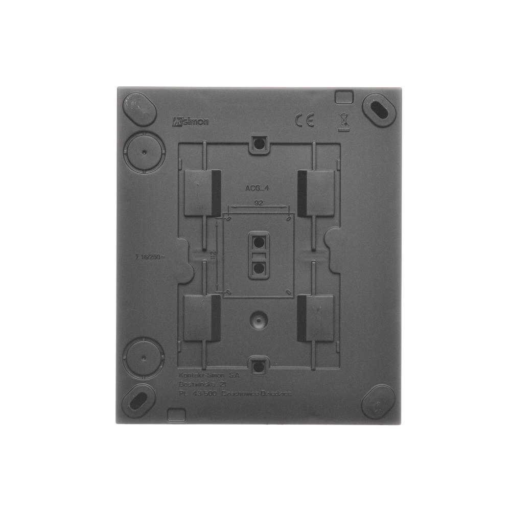 Simon Aquaclick WA-CGZN4Zx-xx-49xx Gniazdo wtyczkowe natynkowe, 4-krotne z uziemieniem, z przesłonami torów prądowych, IP20, 16A, 250V~, zaciski śrubowe; czarny