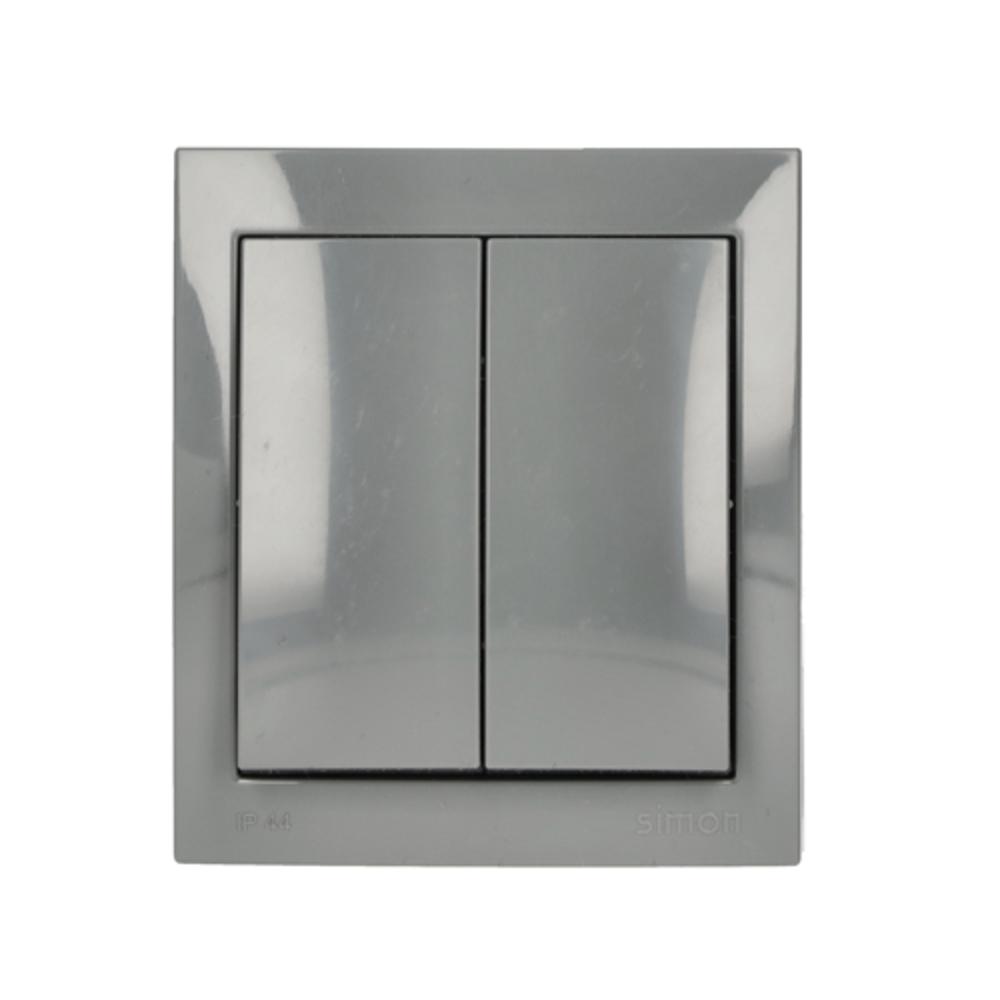 Simon Aquaclick WA-CW6XX-2X-X-18XX Łącznik schodowy natynkowy podwójny bez piktogramu, IP44, 10AX, 250V~, zaciski śrubowe; ciemnoszary