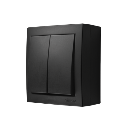 Simon Aquaclick WA-CWLxx-2x-x-49xx Łącznik schodowy podwójny natynkowy z podświetleniem bez piktogramu, IP44, 10AX, 250V~, zaciski śrubowe; czarny
