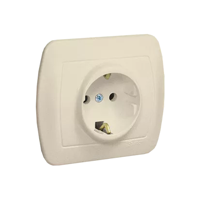 Simon Akord WMAW-42111x-9012 Gniazdo wtyczkowe z uziemieniem typu Schuko, z przesłonami torów prądowych, 16A, 250V~, zaciski śrubowe; beż