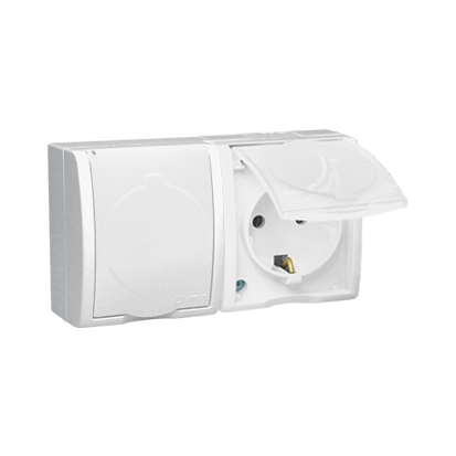 | Nazwa produktu/Rodzaj | gniazdo wtyczkowe podwójne z uziemieniem typu Schuko - w wersji IP54 - klapka w kolorze białym |