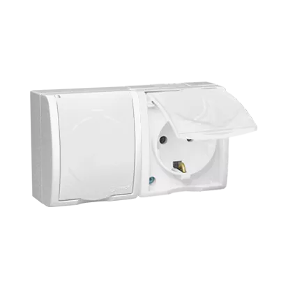 | Nazwa produktu/Rodzaj | gniazdo wtyczkowe podwójne z uziemieniem typu Schuko - przesłony torów prądowych - w wersji IP54 - klapka w kolorze białym |