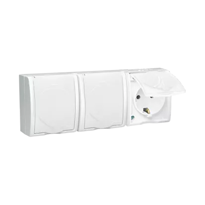 | Nazwa produktu/Rodzaj | gniazdo wtyczkowe potrójne z uziemieniem typu SCHUKO - w wersji IP54 - klapka w kolorze białym |