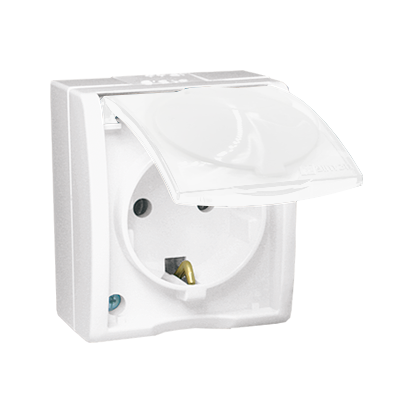 | Nazwa produktu/Rodzaj | gniazdo wtyczkowe pojedyncze z uziemieniem typu Schuko z przesłonami torów prądowych - w wersji IP54 - klapka w kolorze białym |
