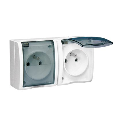 | Nazwa produktu/Rodzaj | gniazdo wtyczkowe podwójne z uziemieniem w wersji IP54 z przesłonami torów prądowych - klapka w kolorze transparentnym |