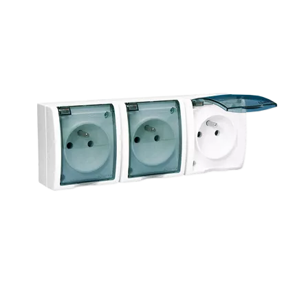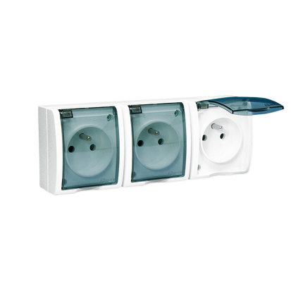 | Nazwa produktu/Rodzaj | gniazdo wtyczkowe potrójne z uziemieniem - z przesłony torów prądowych - w wersji IP54 - klapka w kolorze transparentnym |