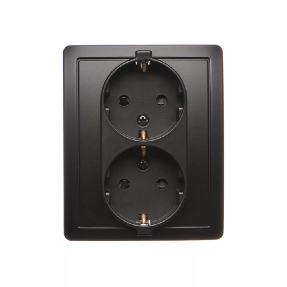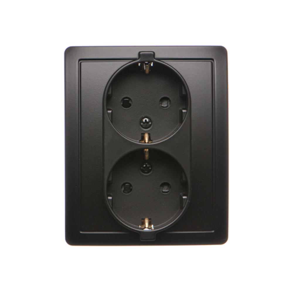 Simon Basic WMBW-12211x-Y013 Gniazdo wtyczkowe z uziemieniem Schuko podwójne, z przesłonami torów prądowych; czarny
