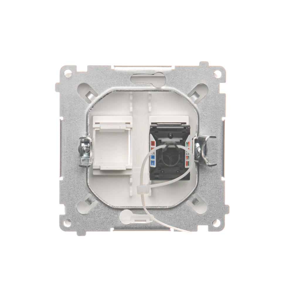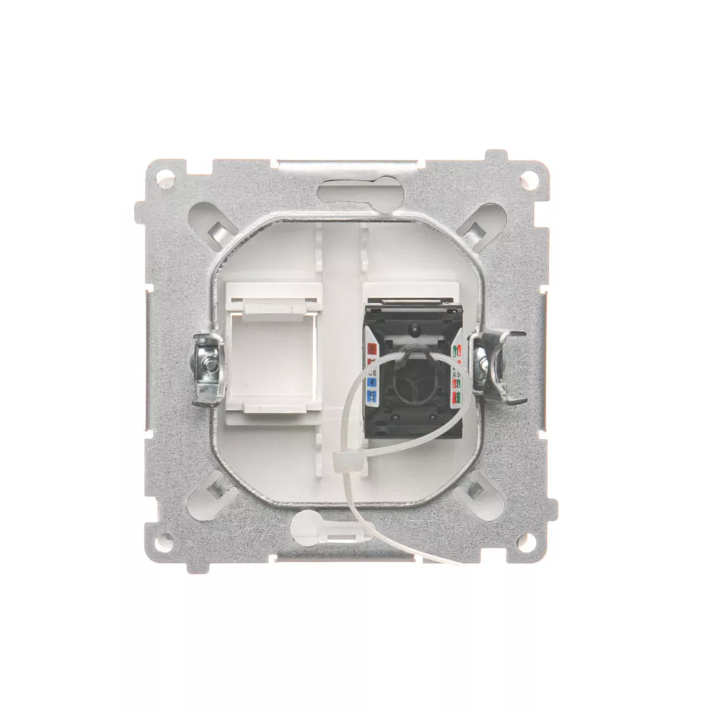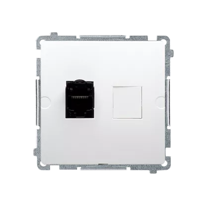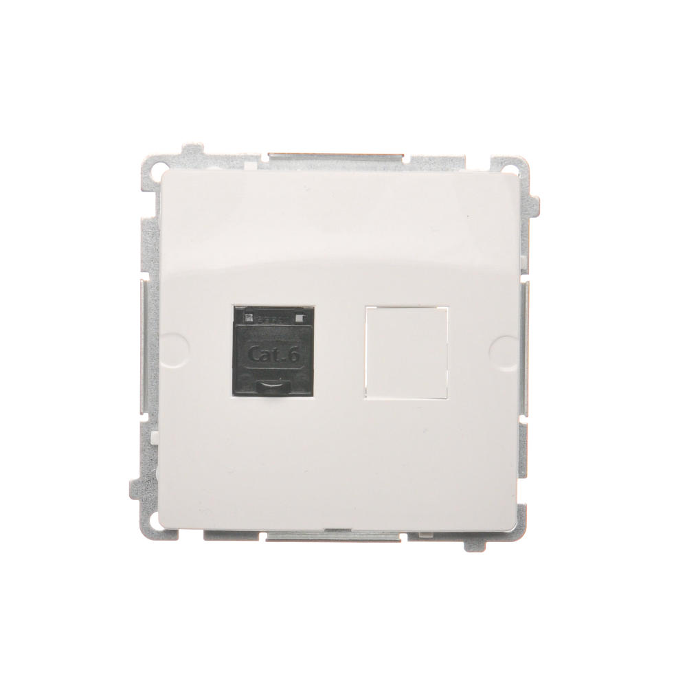 Simon Basic WMUK-0610xx-1011 Gniazdo komputerowe RJ45, kategoria 6, pojedyncze z przesłoną przeciwkurzową (moduł). Montaż na łapki lub wkręty; biały