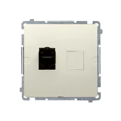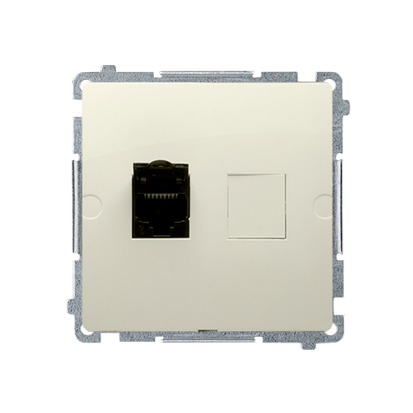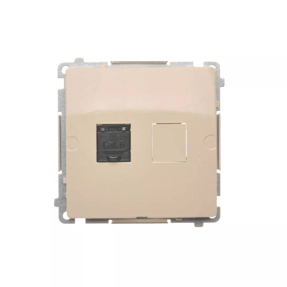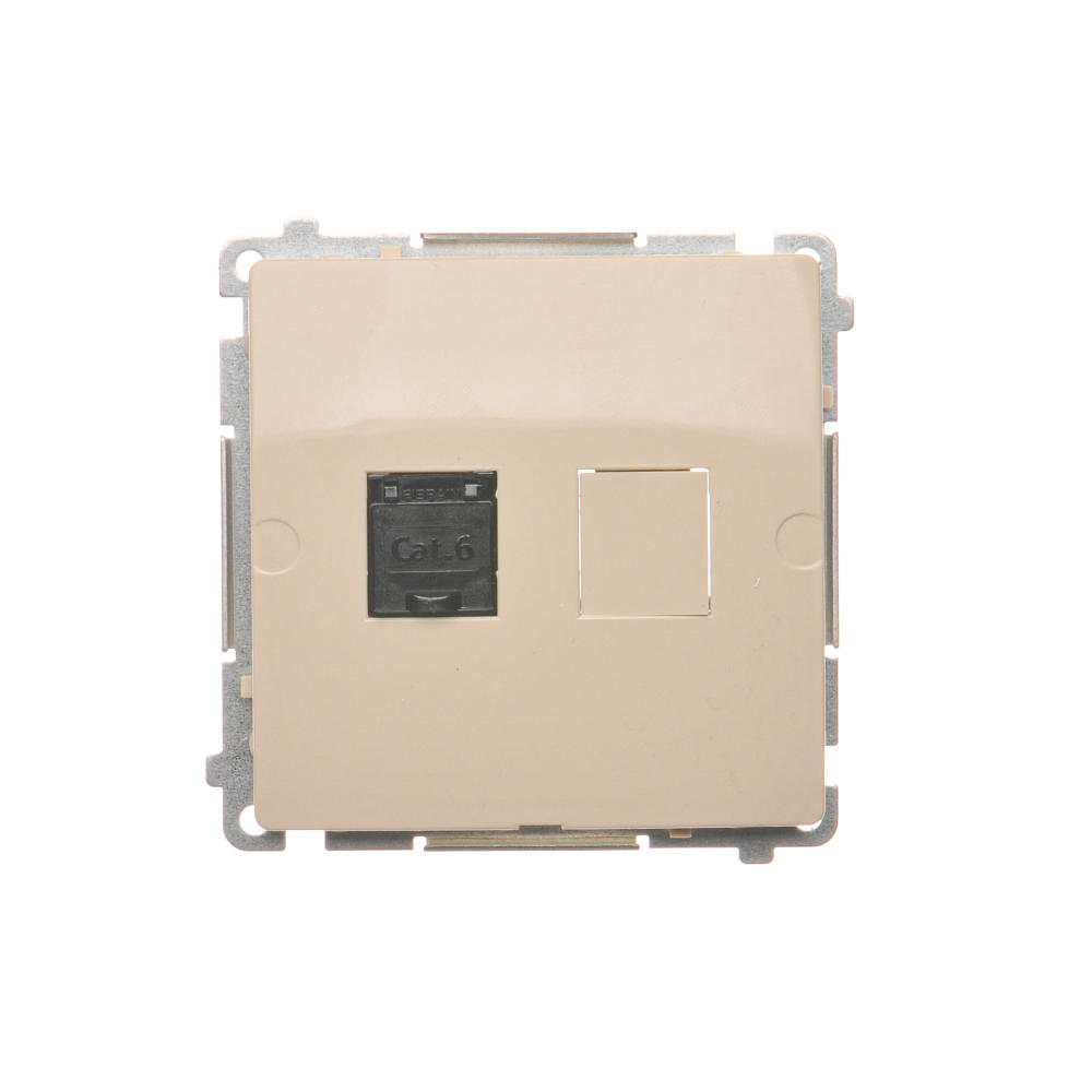 Simon Basic WMUK-0610xx-9011 Gniazdo komputerowe RJ45, kategoria 6, pojedyncze z przesłoną przeciwkurzową (moduł). Montaż na łapki lub wkręty; beż