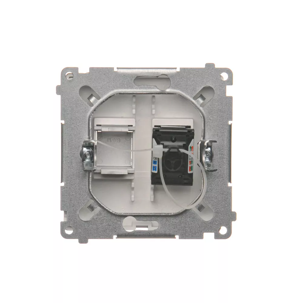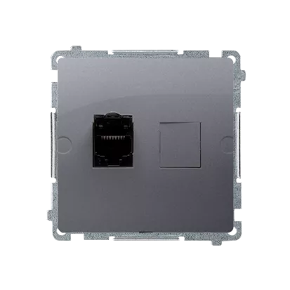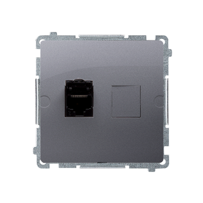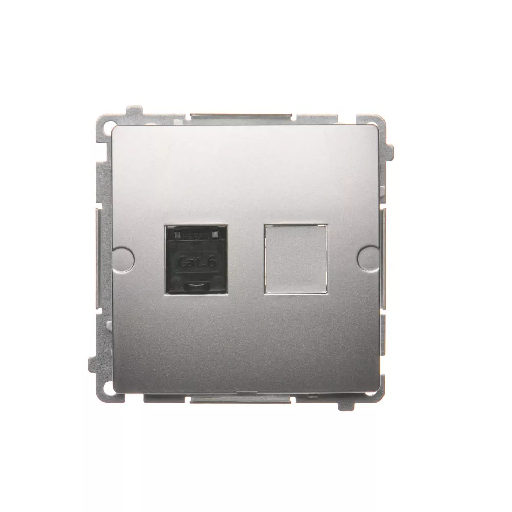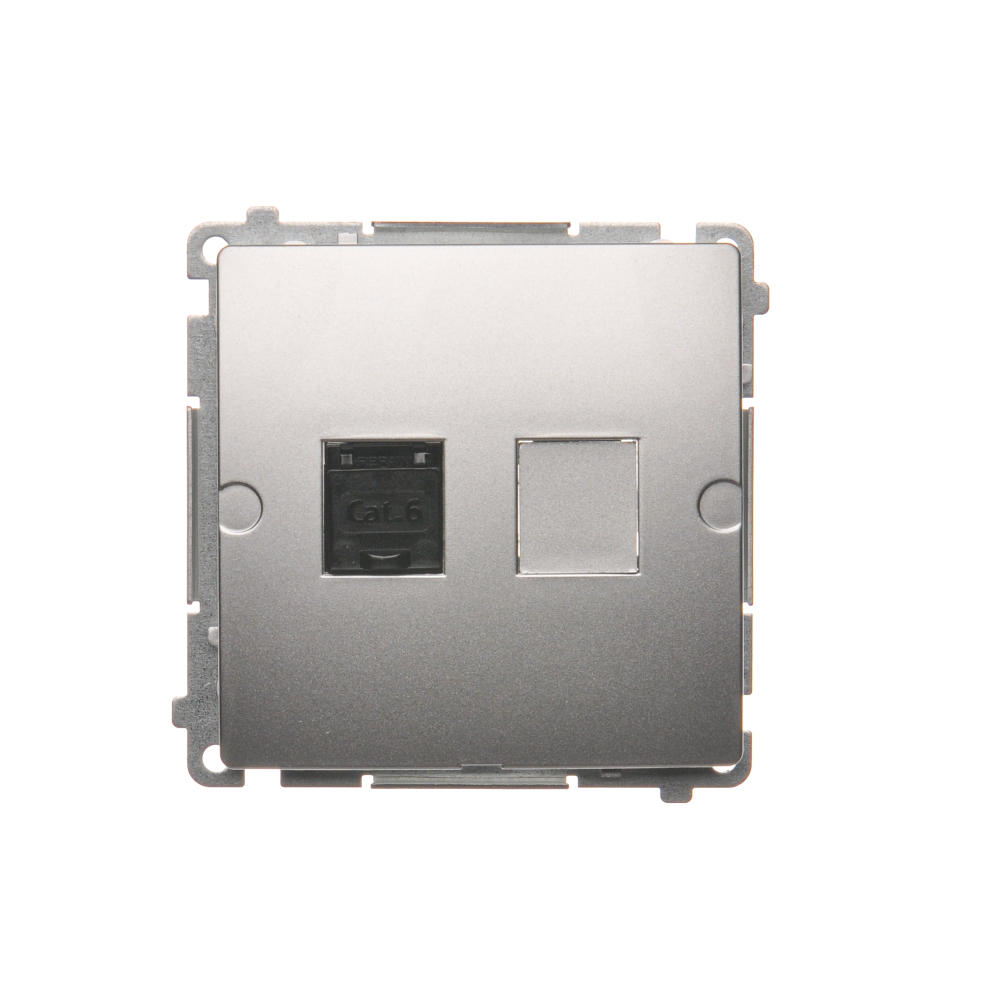 Simon Basic WMUK-0610xx-4011 Gniazdo komputerowe RJ45, kategoria 6, pojedyncze z przesłoną przeciwkurzową (moduł). Montaż na łapki lub wkręty; srebrny mat