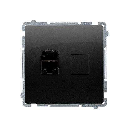 Simon Basic WMUK-0610xx-Y011 Gniazdo komputerowe RJ45, kategoria 6, pojedyncze z przesłoną przeciwkurzową (moduł). Montaż na łapki lub wkręty; czarny