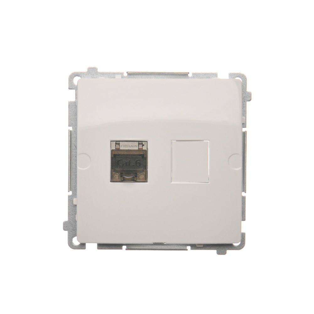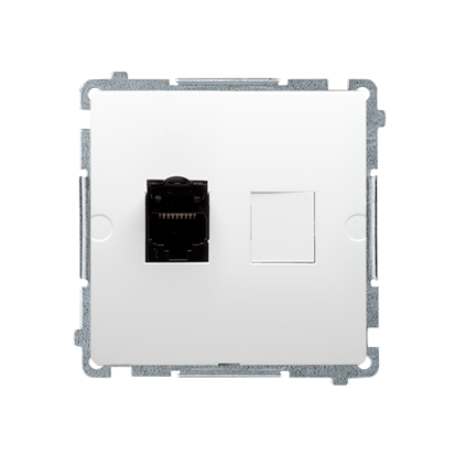 Simon Basic WMUK-0630xx-1011 Gniazdo komputerowe RJ45, kategoria 6, pojedyncze ekranowane z przesłoną przeciwkurzową (moduł). Montaż na łapki lub wkręty; biały