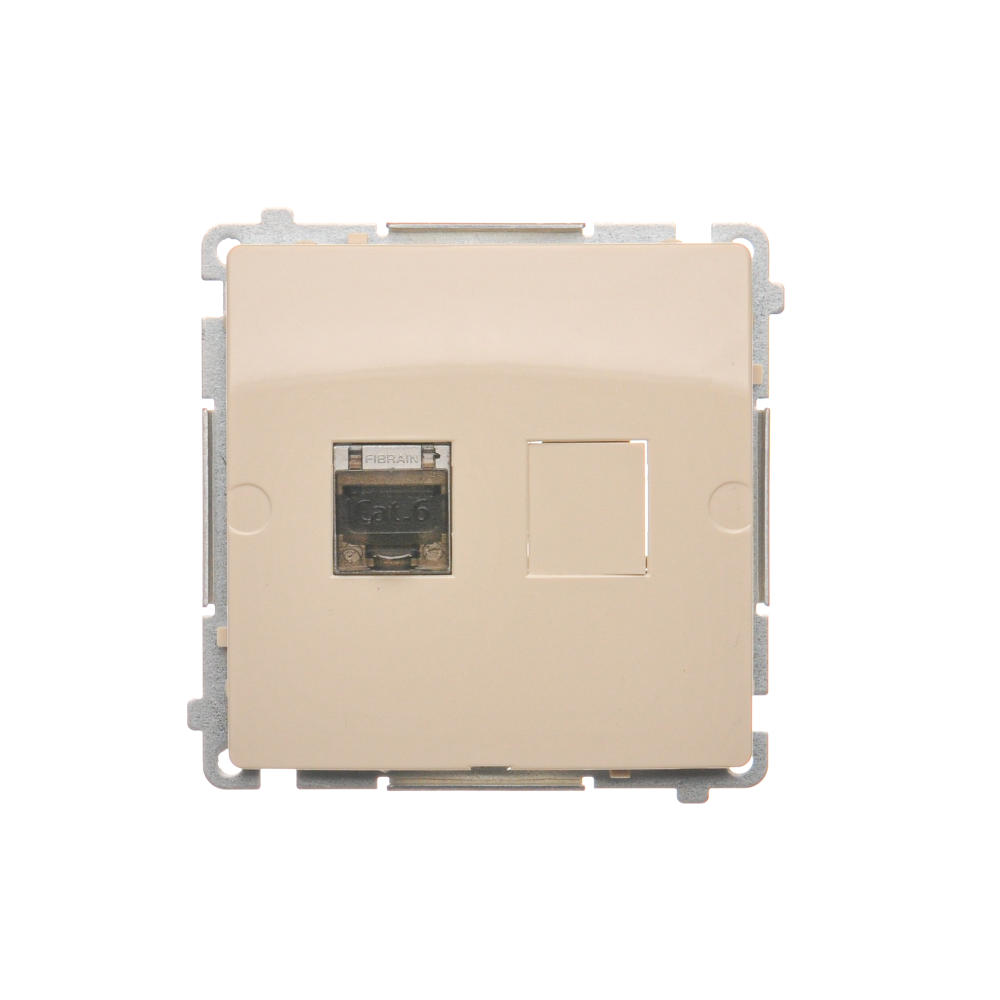 Simon Basic WMUK-0630xx-9011 Gniazdo komputerowe RJ45, kategoria 6, pojedyncze ekranowane z przesłoną przeciwkurzową (moduł). Montaż na łapki lub wkręty; beż