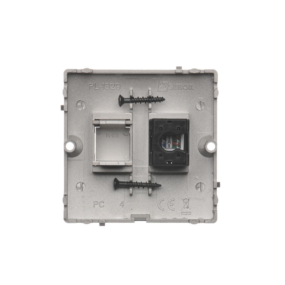 Simon Basic WMUK-0510F2-H011 Gniazdo komputerowe RJ45 pojedyncze, kategoria 5e (moduł). Montaż gniazda na wkręty do puszki; satynowy