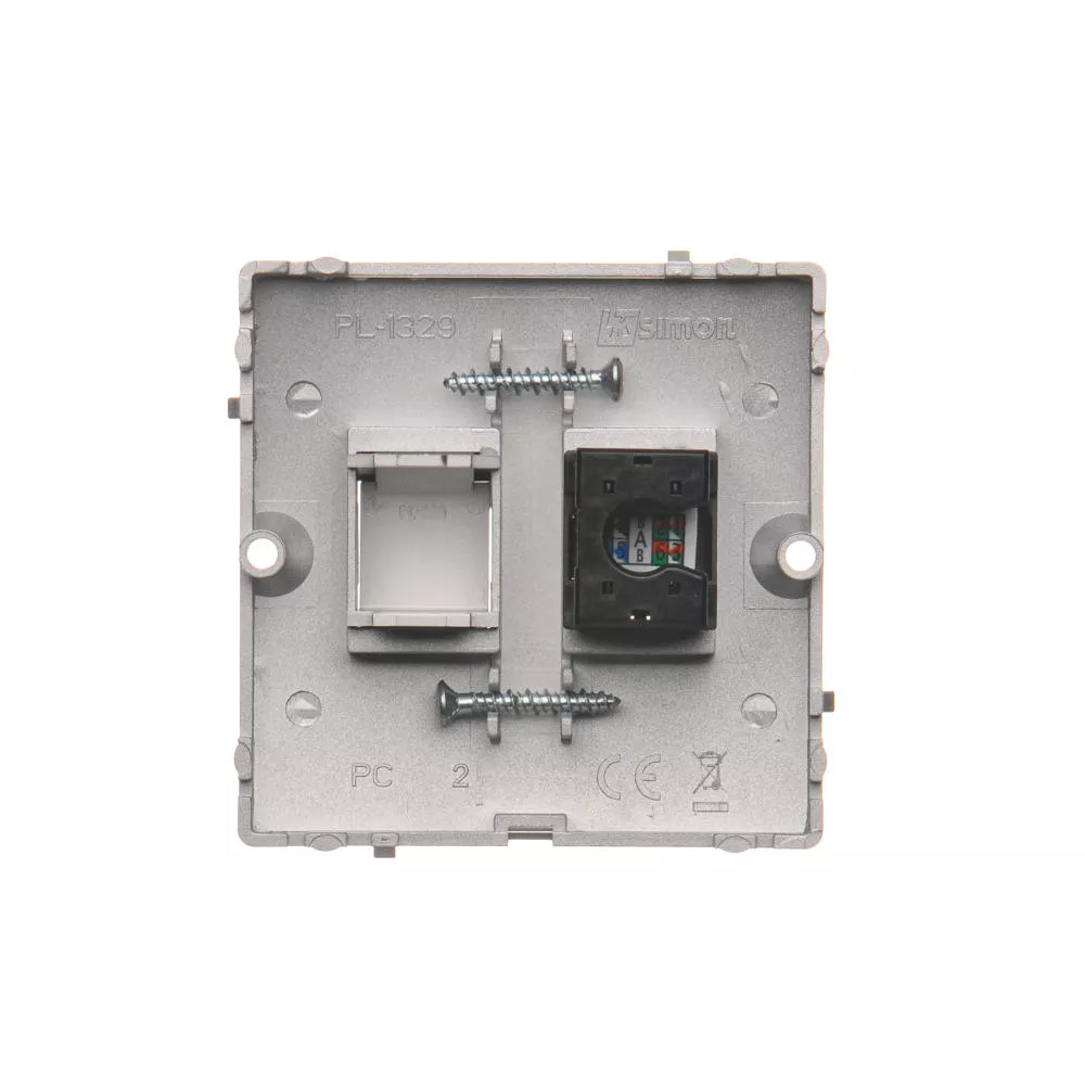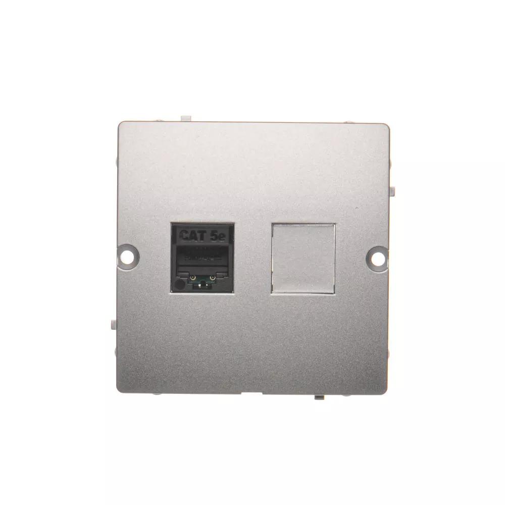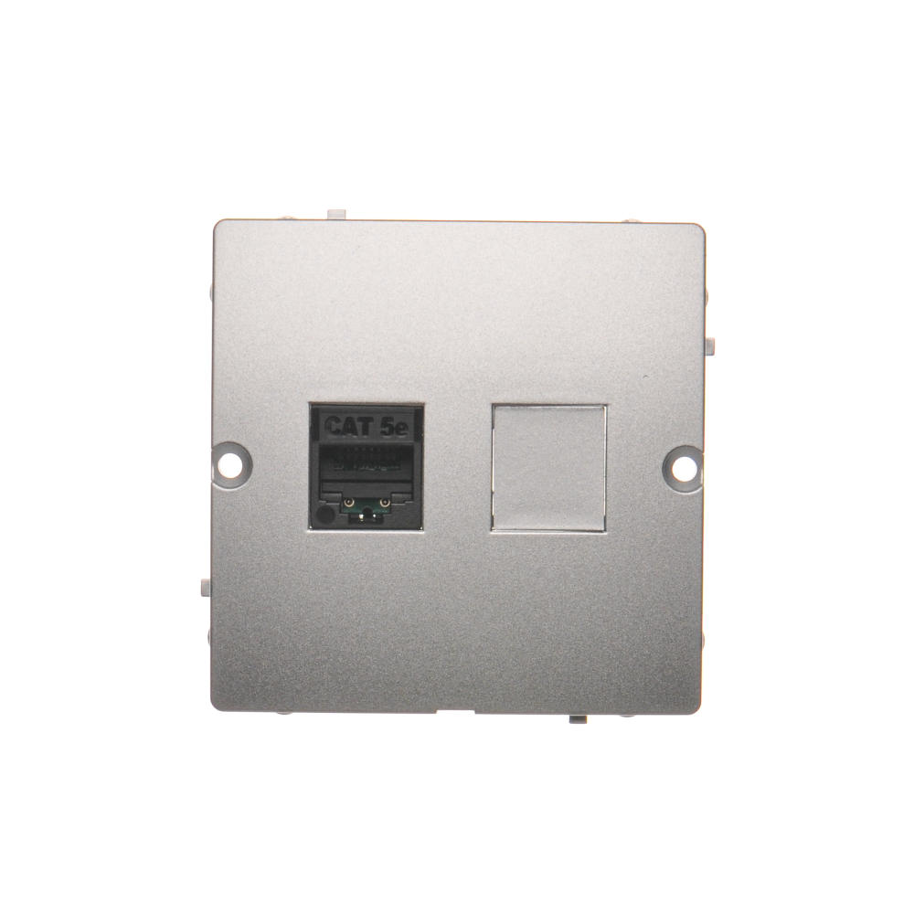 Simon Basic WMUK-0510F2-4011 Gniazdo komputerowe RJ45 pojedyncze, kategoria 5e (moduł). Montaż gniazda na wkręty do puszki; srebrny mat