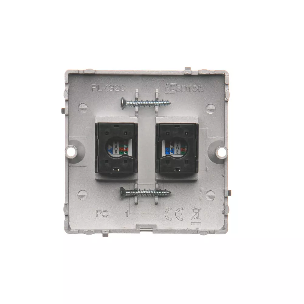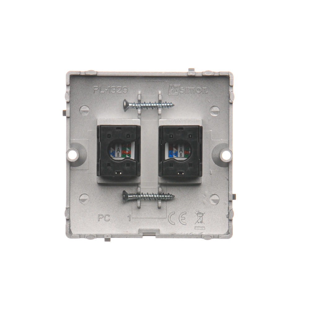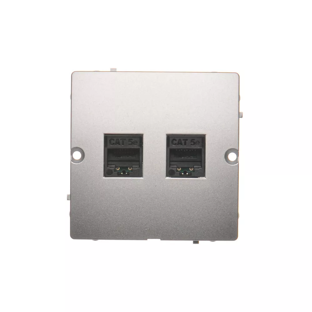 Simon Basic WMUK-0520F2-4011 Gniazdo komputerowe RJ45 podwójne kategoria 5e (moduł). Montaż gniazda na wkręty do puszki; srebrny mat