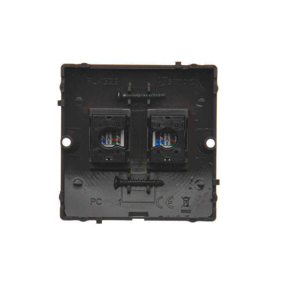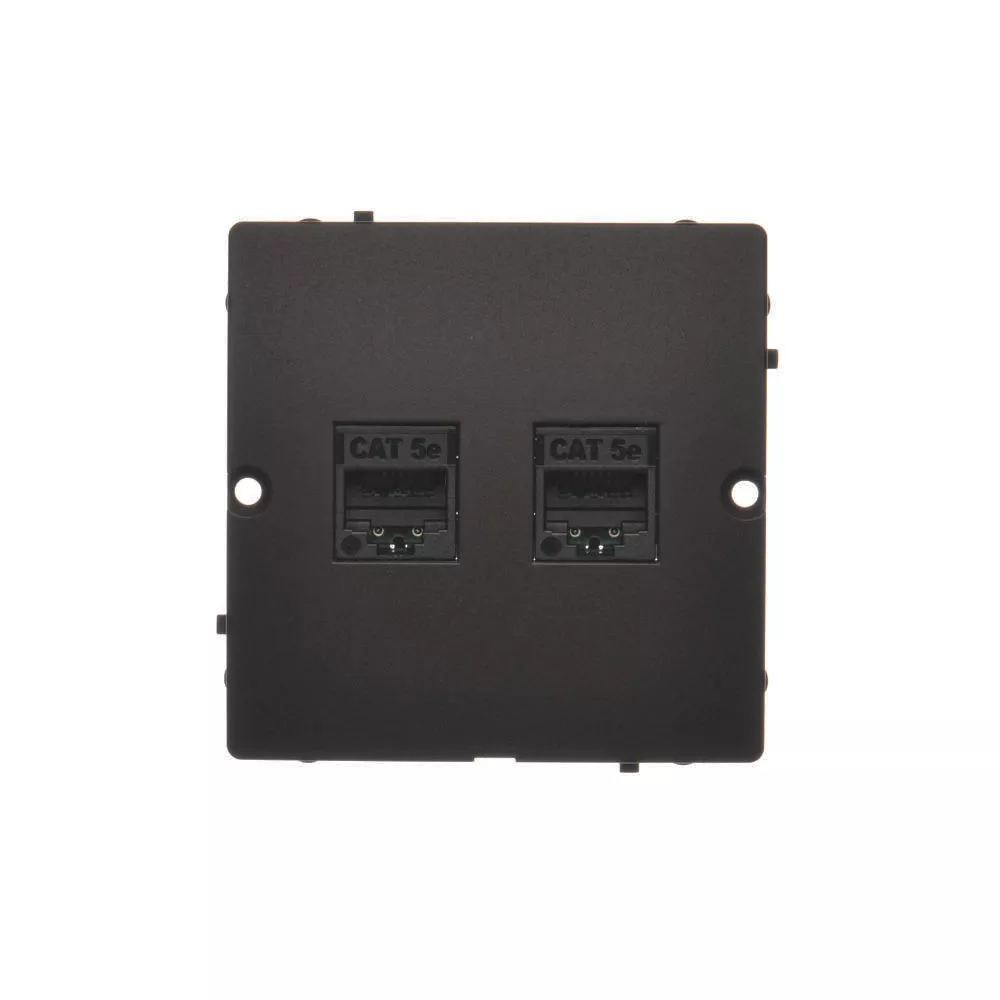 Simon Basic WMUK-0520F2-Y011 Gniazdo komputerowe RJ45 podwójne kategoria 5e (moduł). Montaż gniazda na wkręty do puszki; czarny